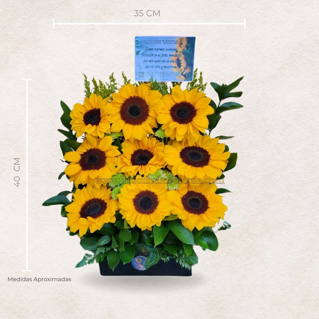 Nuestro ramo de girasoles está diseñado para transmitir energía positiva, calidez y luz. Cada diseño combina girasoles frescos con follaje selecto y una envoltura elegante que resalta su belleza natural. Perfecto para cumpleaños, agradecimientos o simplemente para iluminar el día de alguien especial.