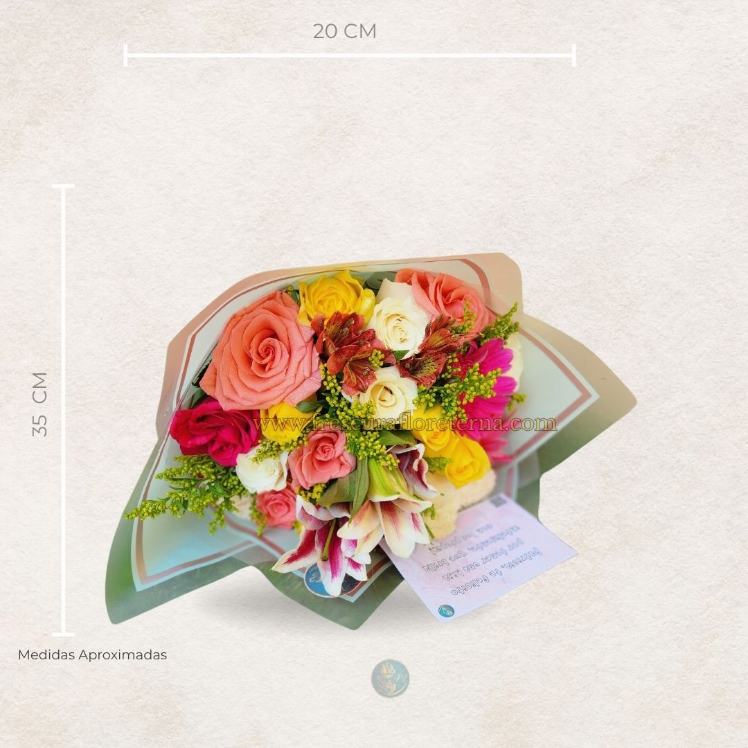 Diseñado con una selección de flores frescas y coloridas, este bouquet celebra la diversidad y la belleza natural. Cada tamaño está cuidadosamente elaborado con combinaciones armónicas y envolturas elegantes, ideal para cumpleaños, agradecimientos o simplemente sorprender con estilo.